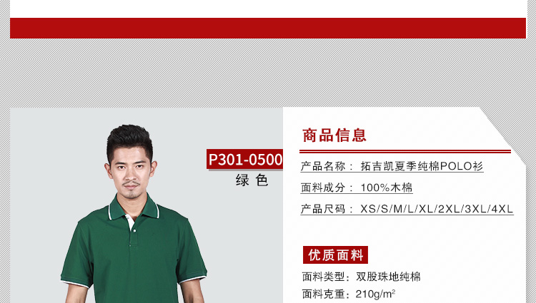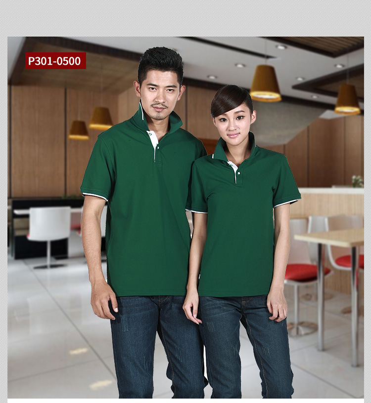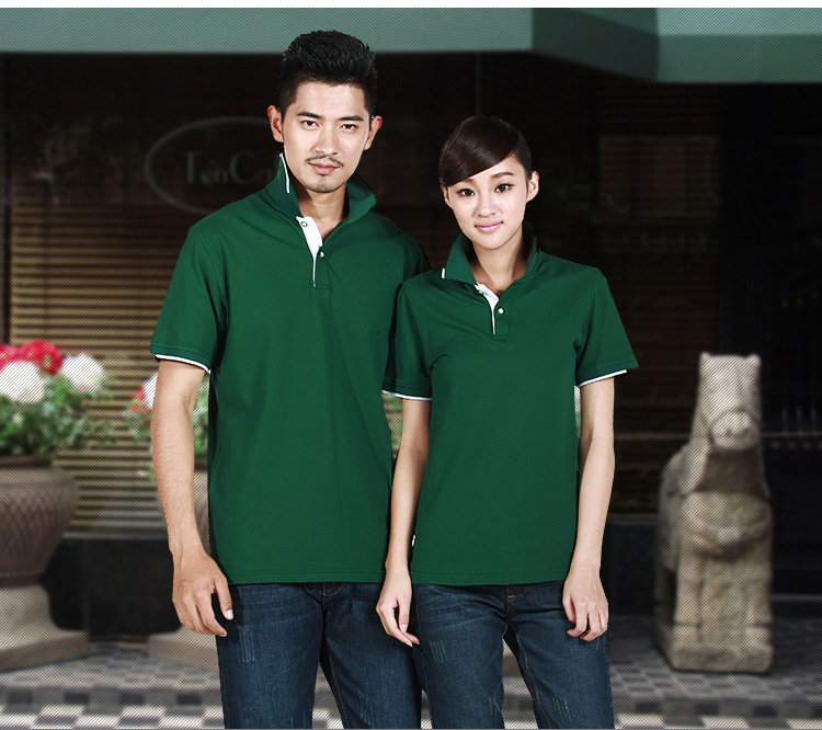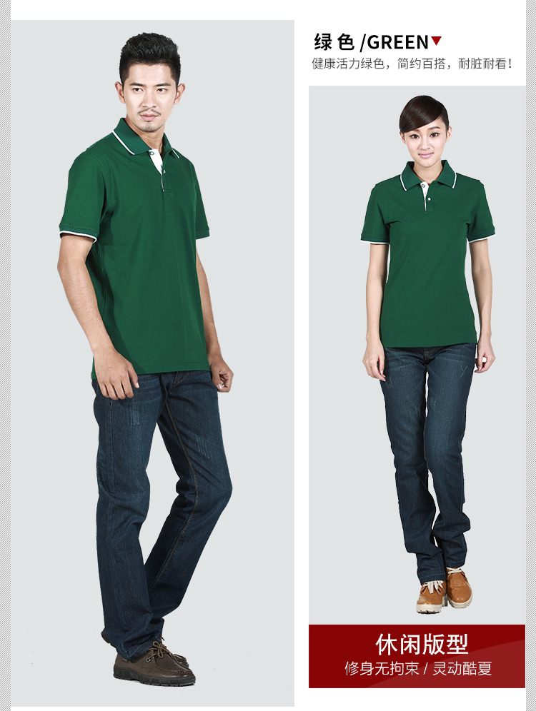 > 重庆绿色赛尔纯棉拉架珠地素色POLO衫