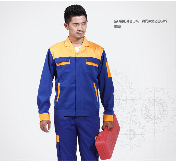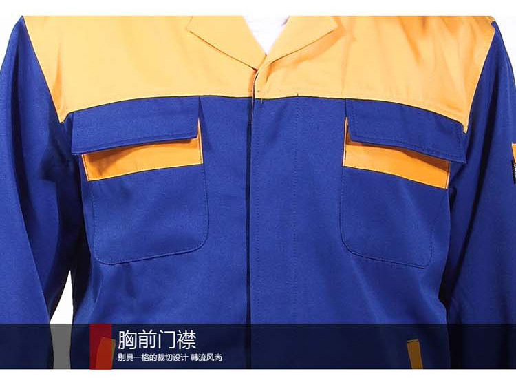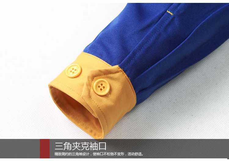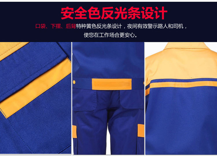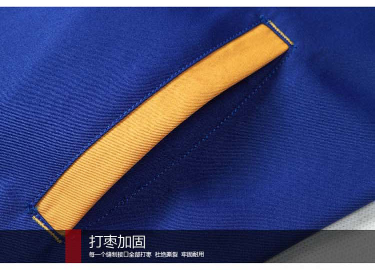 重庆涤棉厚纱卡大红黄色插色长袖反光条工作服