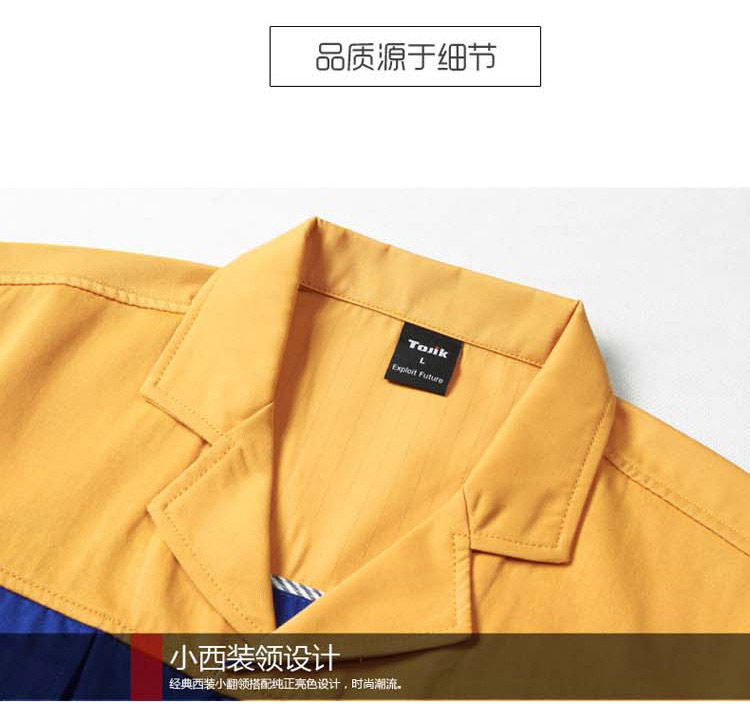 重庆涤棉细斜纹黄色短袖反光条工作服