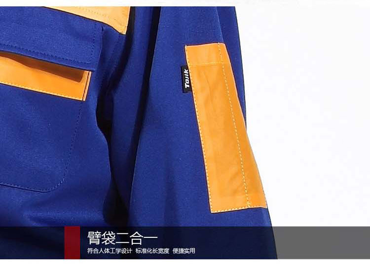 重庆涤棉厚纱卡彩蓝色长袖反光条工作服