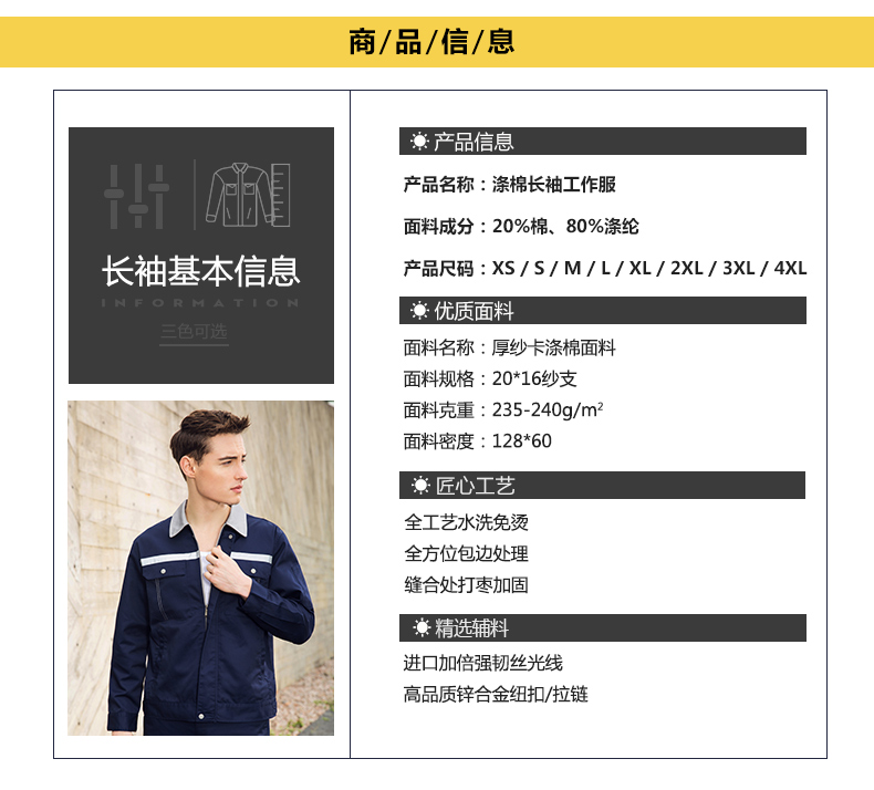 重庆涤棉厚纱卡大红黄色插色长袖反光条工作服