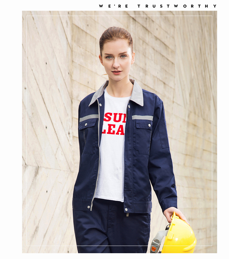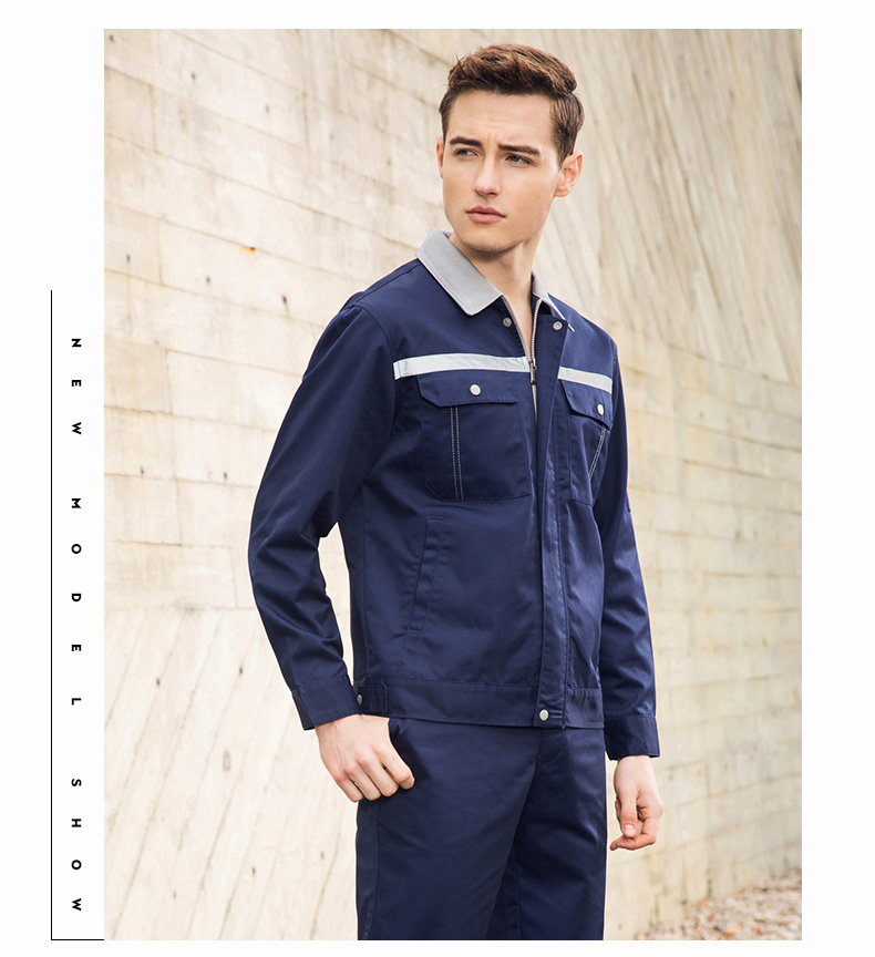 重庆涤棉厚纱卡彩蓝色长袖反光条工作服