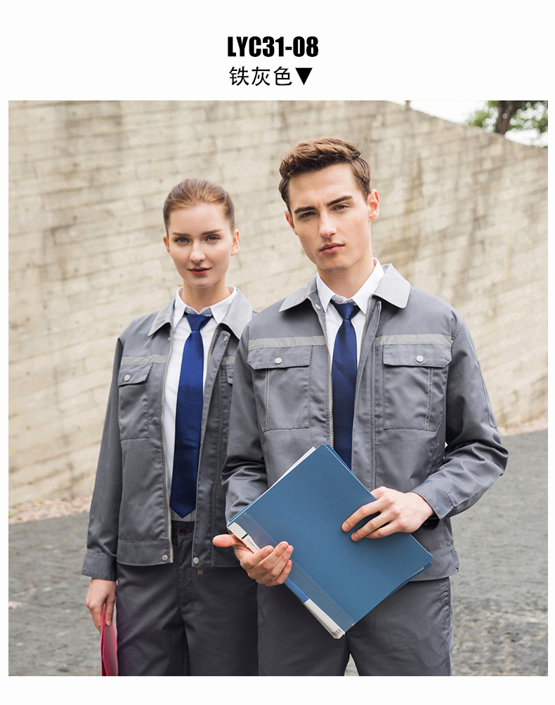 > 重庆涤棉厚纱卡铁灰色长袖工作服