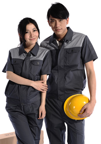 采购:重庆涤棉斜纹铁灰浅灰插色短袖工作服