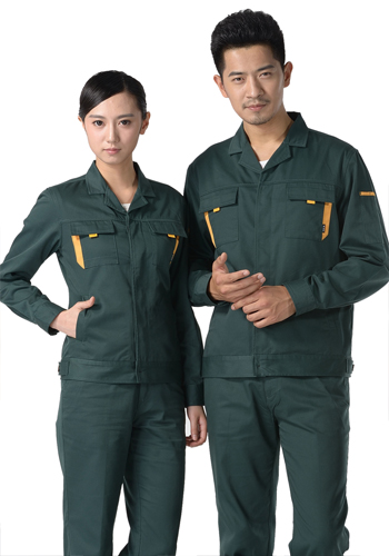 重庆墨绿色纱卡涤棉长袖工作服