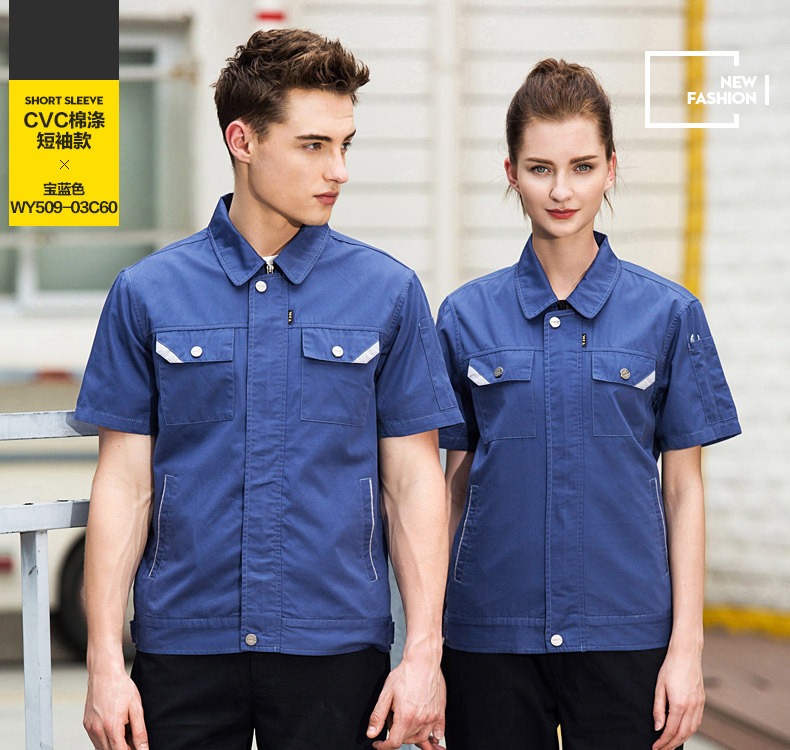 > 重庆CVC斜纹宝蓝短袖工作服