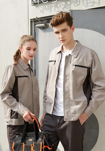 > 重庆浅驼铁灰插色长袖纯棉工作服