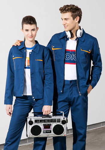 采购:重庆涤棉厚纱卡深青色长袖工作服