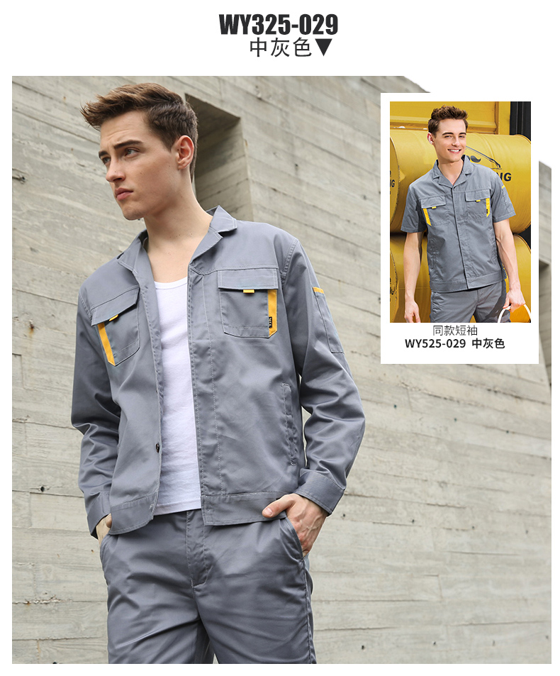 重庆涤棉细斜纹黄色短袖反光条工作服