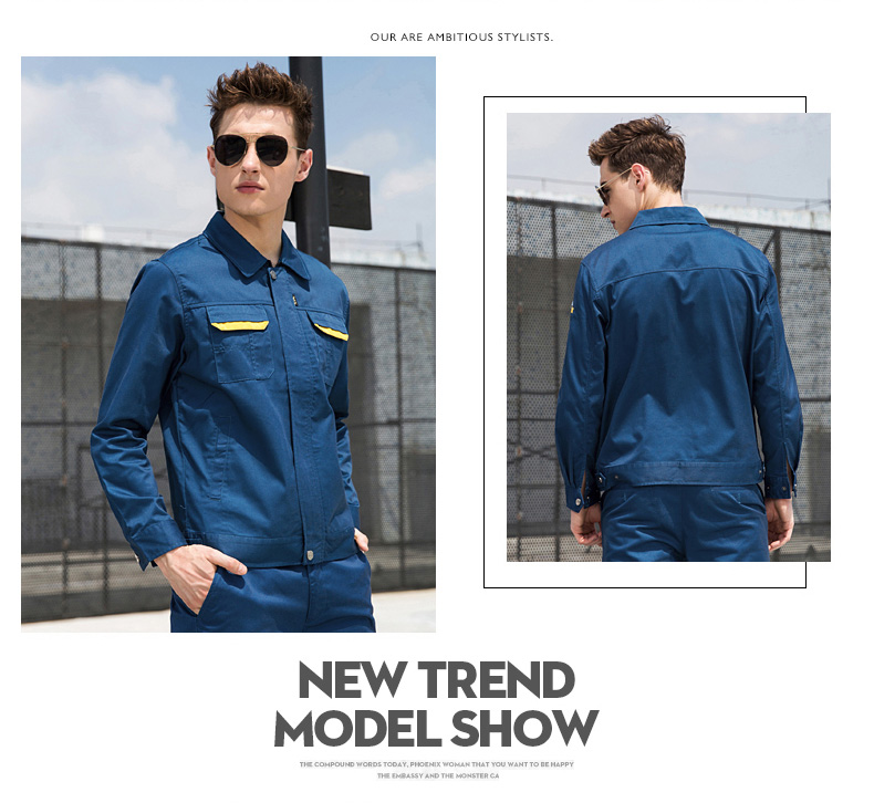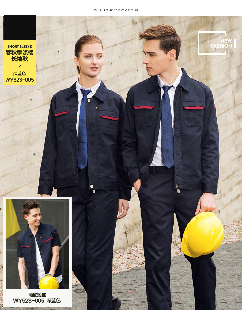 重庆涤棉细斜纹深蓝枣红插色短袖反光条工作服
