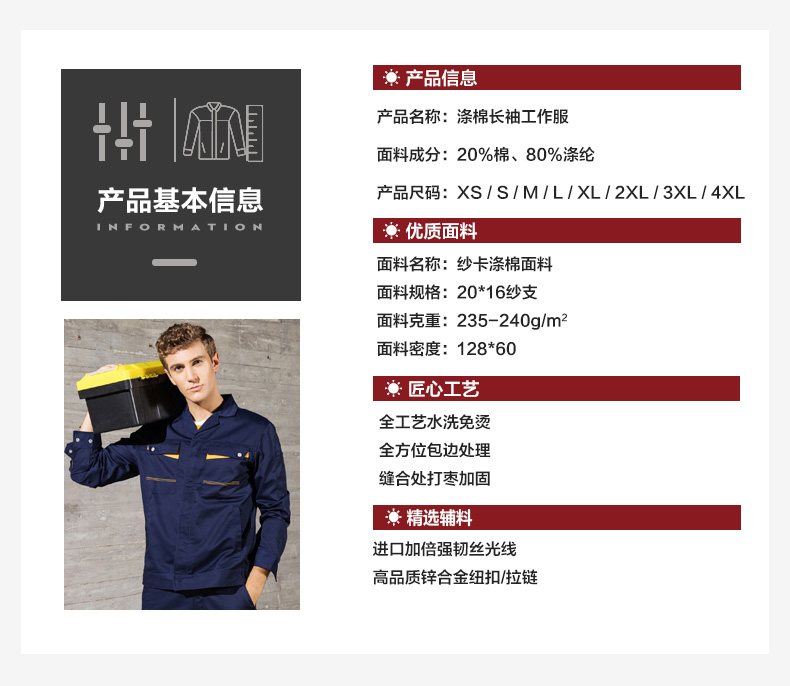 采购:重庆涤棉厚纱卡深蓝色长袖工作服