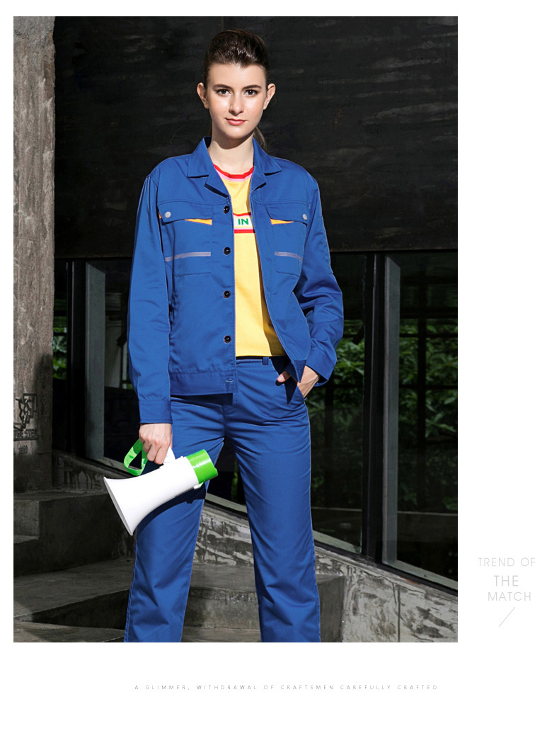 重庆涤棉细斜纹深蓝枣红插色短袖反光条工作服