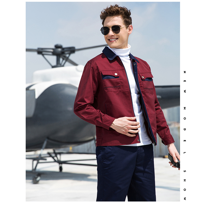 重庆涤棉厚纱卡枣红色长袖工作服
