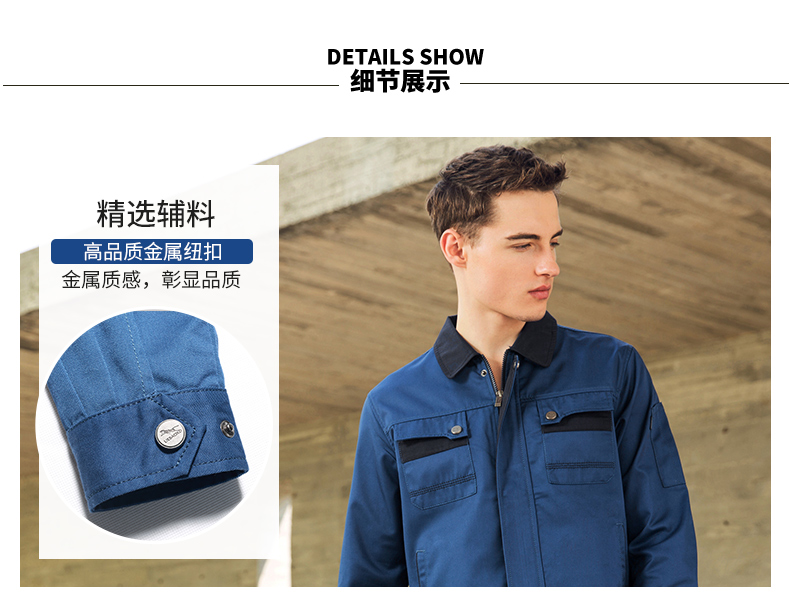 重庆涤棉细斜纹深蓝枣红插色短袖反光条工作服