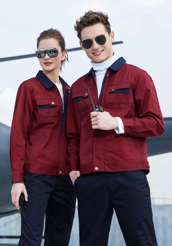 > 重庆涤棉厚纱卡枣红色长袖工作服