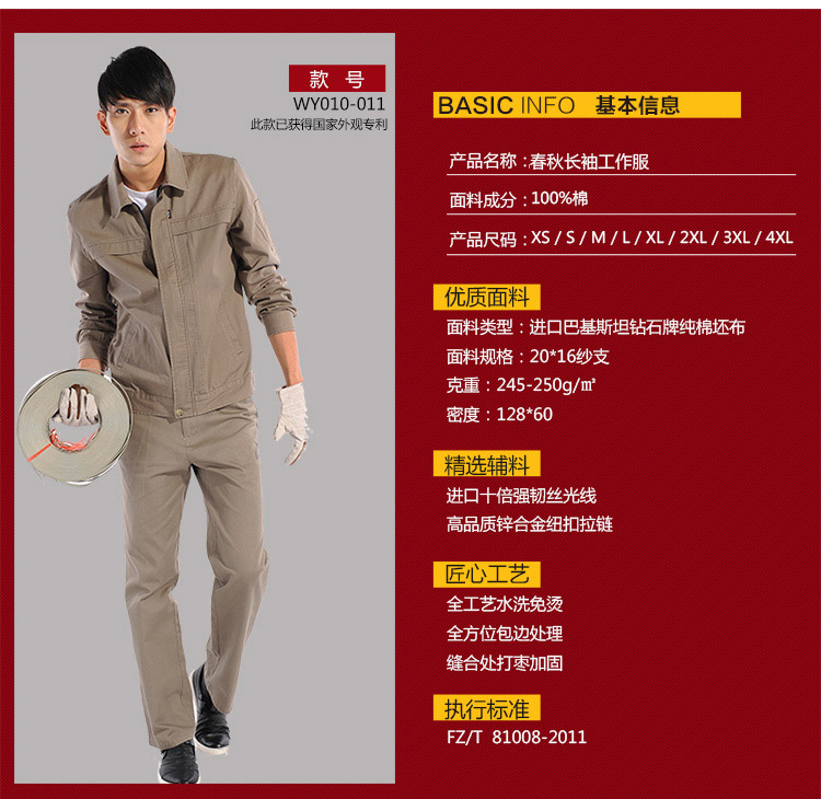 采购:重庆驼色长袖纯棉工作服
