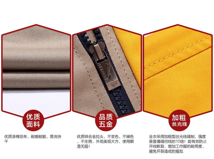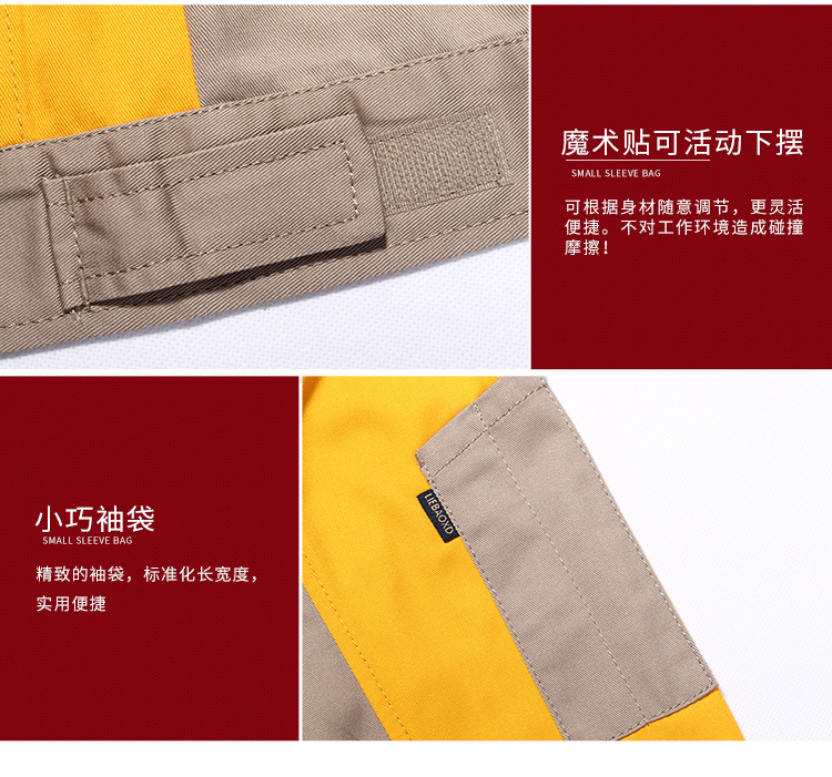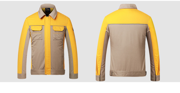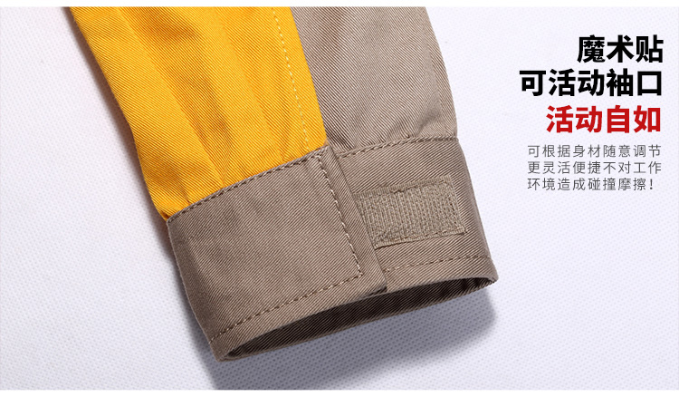 > 重庆涤棉厚纱卡驼色黄色插色长袖反光条工作服