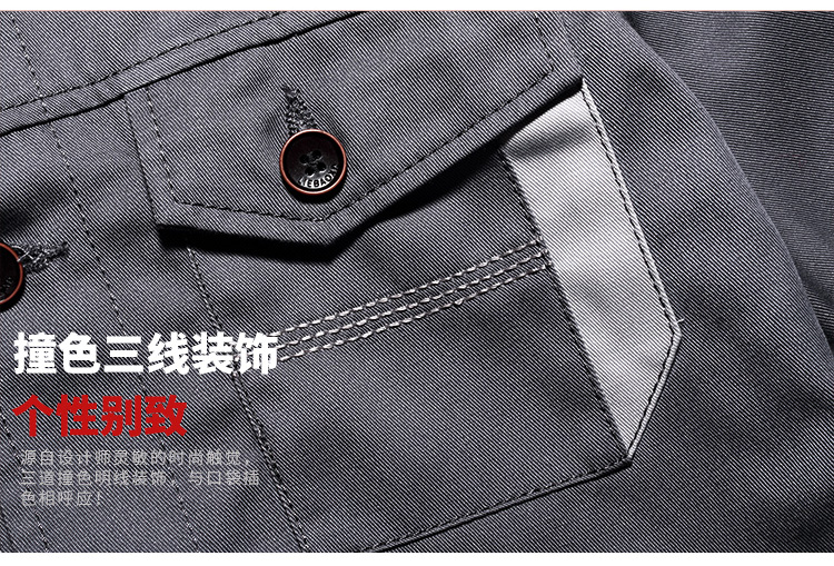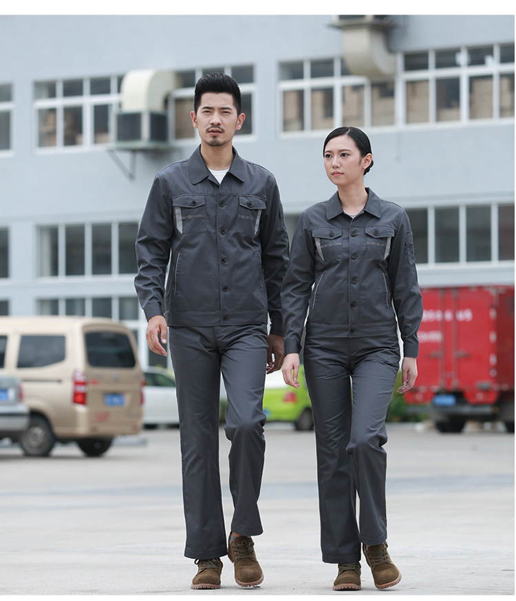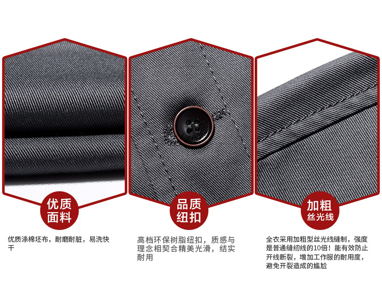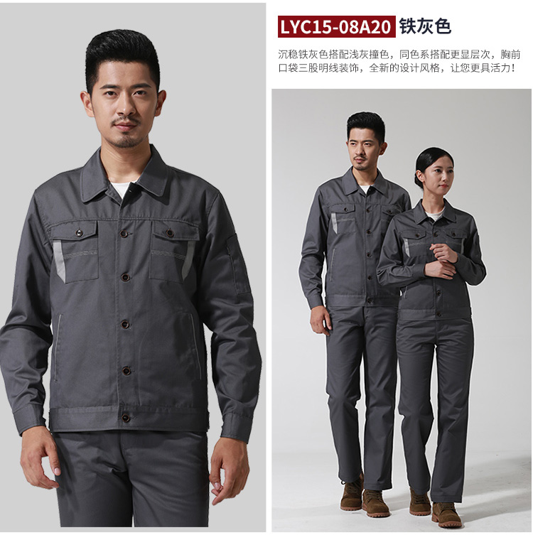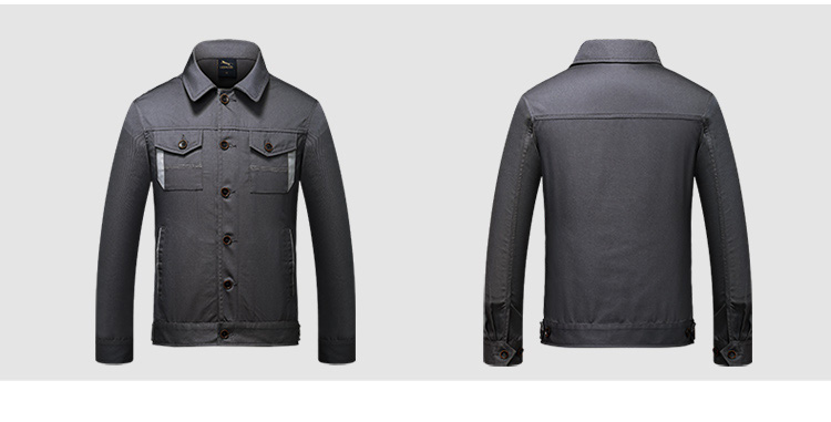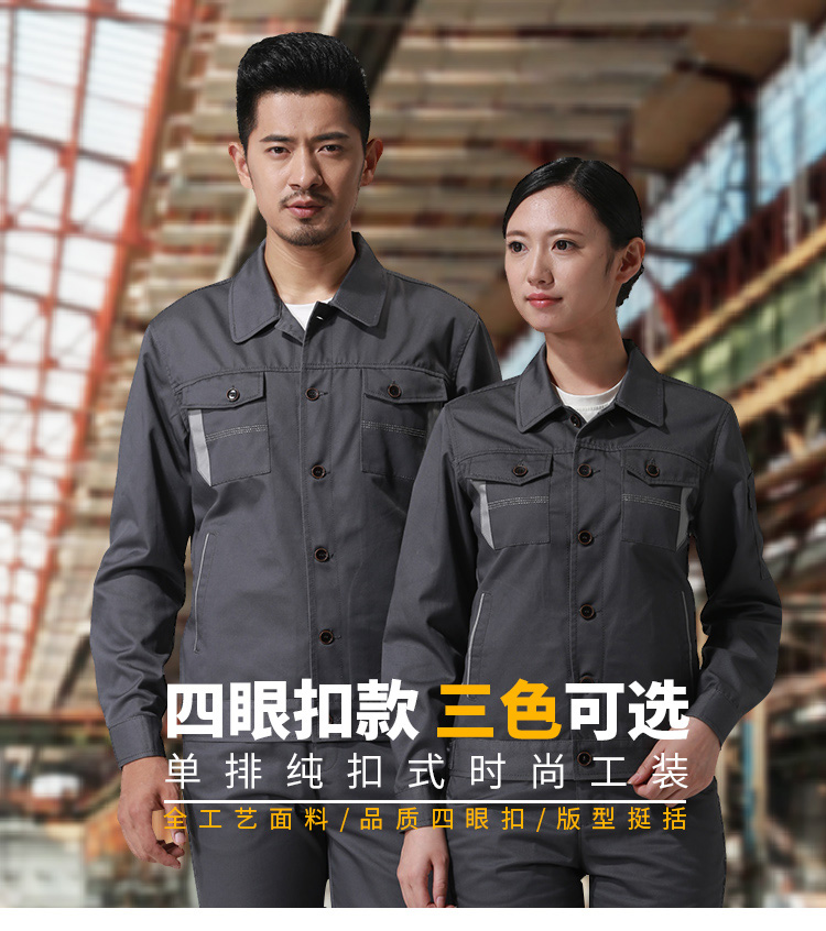 > 重庆涤棉厚纱卡铁灰色长袖工作服