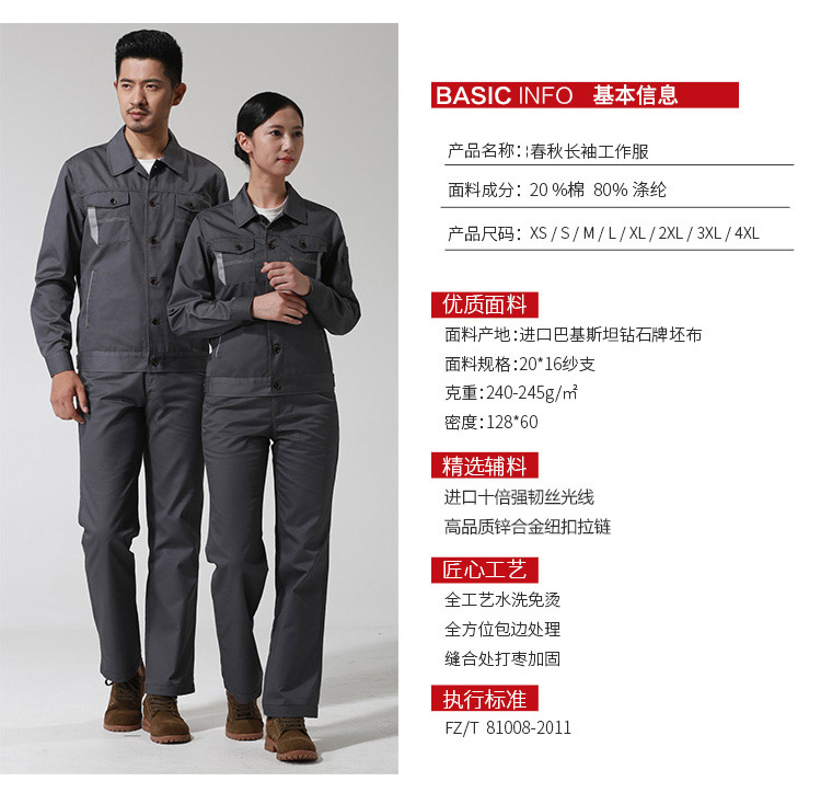 重庆涤棉厚纱卡铁灰色长袖工作服
