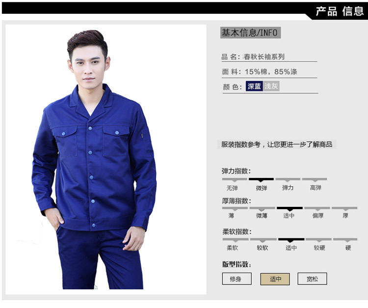 采购:重庆涤棉厚纱卡深蓝色长袖工作服