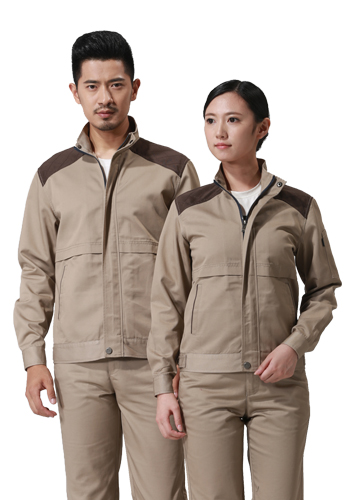 采购:重庆涤棉厚纱卡驼色插色长袖工作服