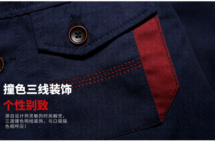 重庆涤棉细斜纹深蓝枣红插色短袖反光条工作服