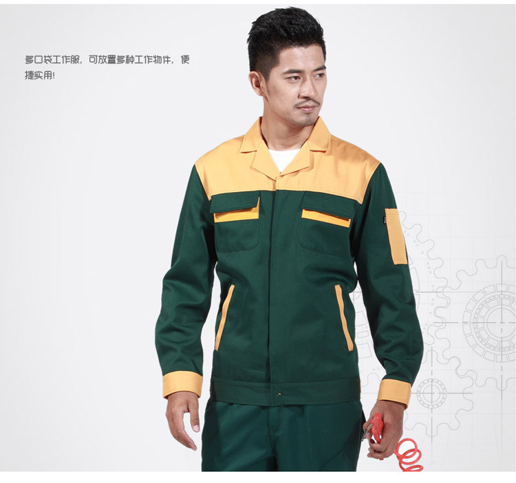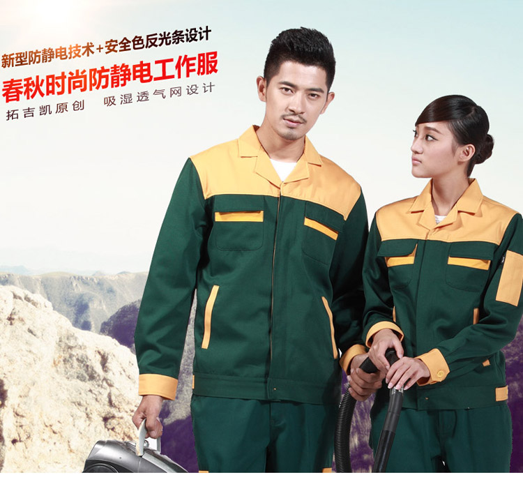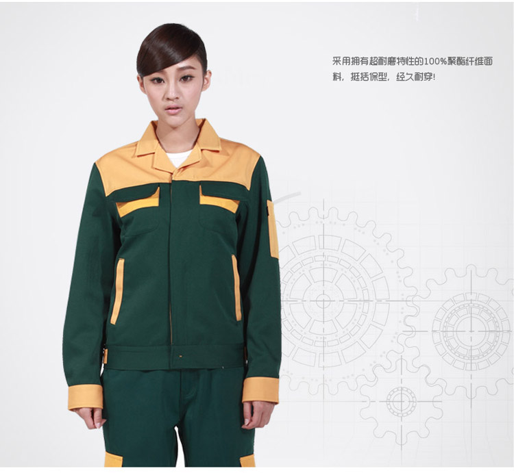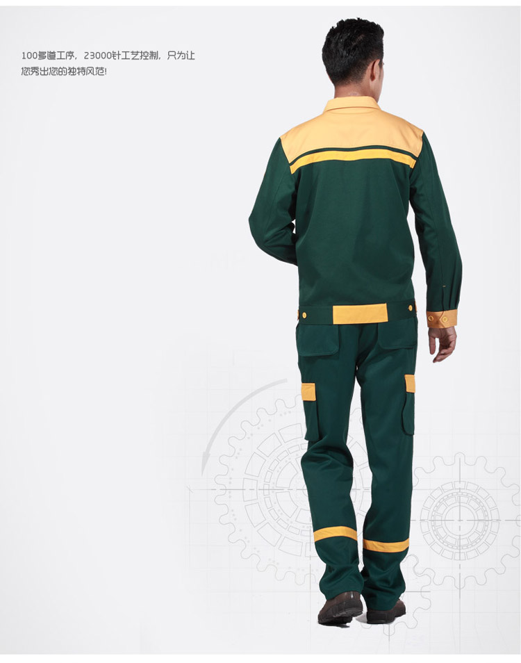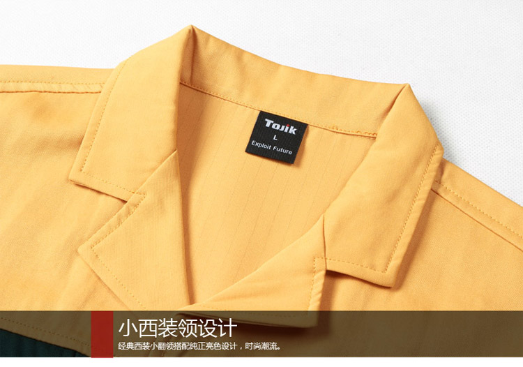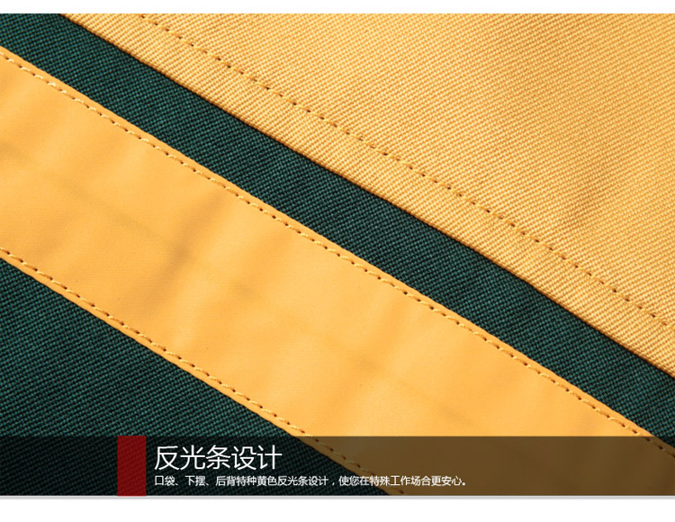 重庆涤棉细斜纹黄色短袖反光条工作服