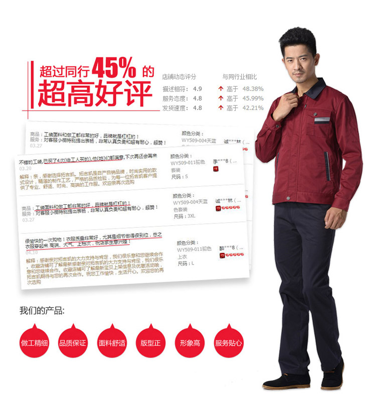 重庆涤棉细斜纹深蓝枣红插色短袖反光条工作服