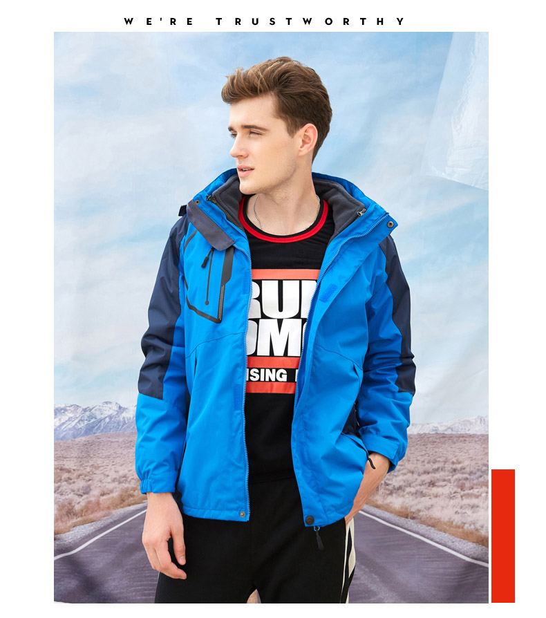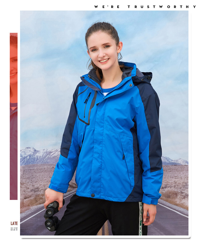 重庆宝蓝色二合一防风防水保暖透气冲锋衣