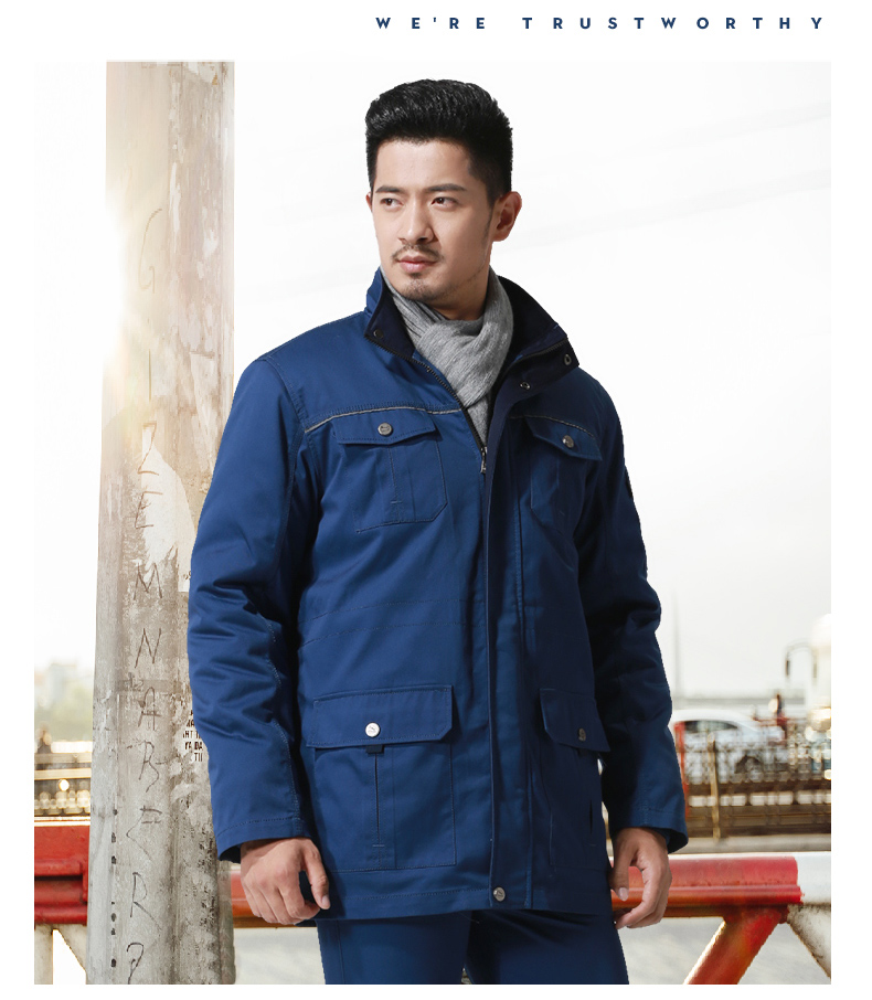 采购:重庆涤棉厚纱卡可脱里长款宝蓝色棉服