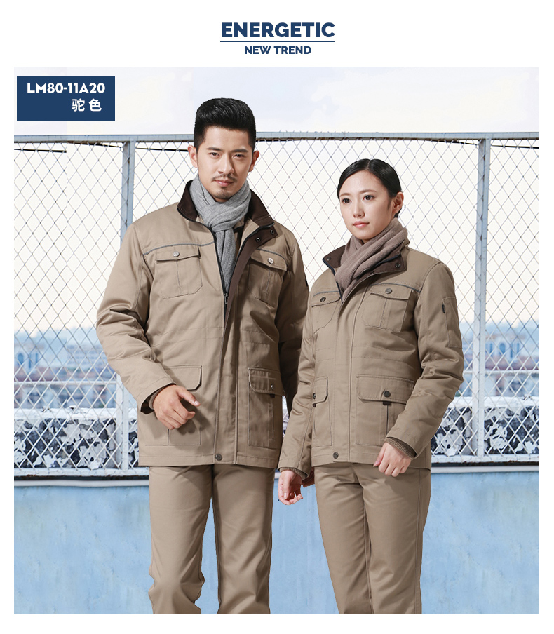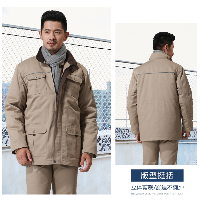 重庆涤棉厚纱卡可脱里长款驼色棉服
