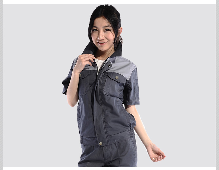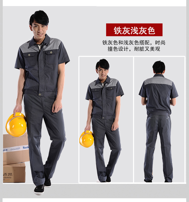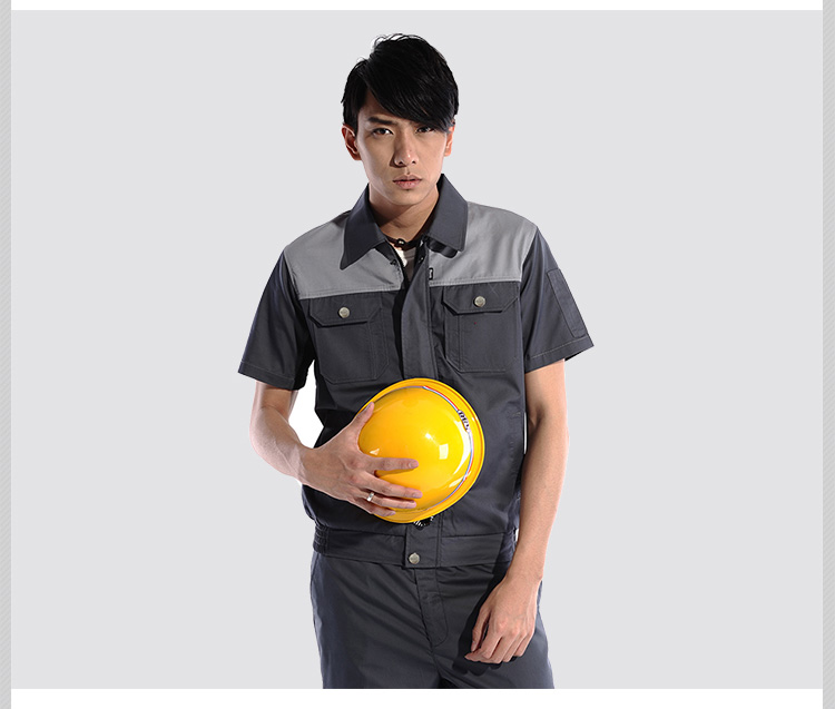 重庆涤棉斜纹铁灰浅灰插色短袖工作服