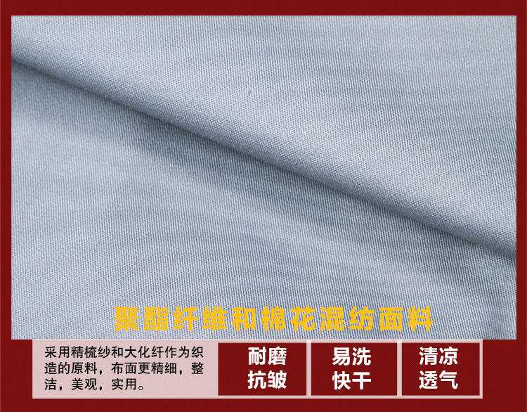 重庆中灰色细斜纹涤棉短袖工作服