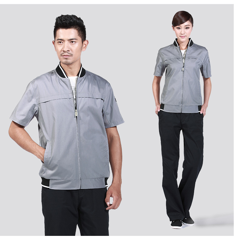 重庆涤棉斜纹浅灰短袖工作服