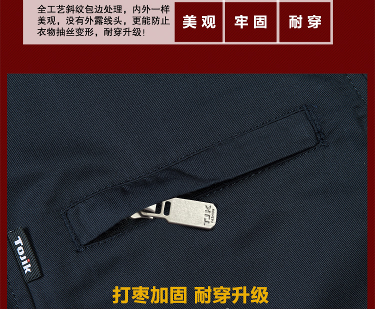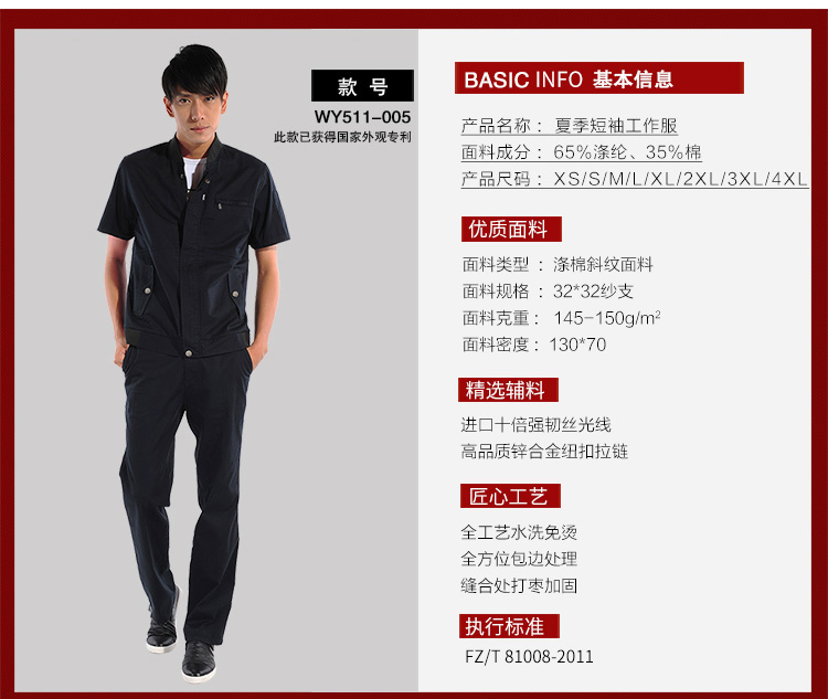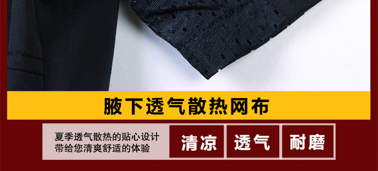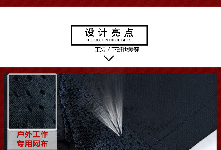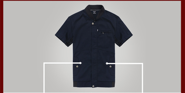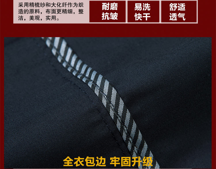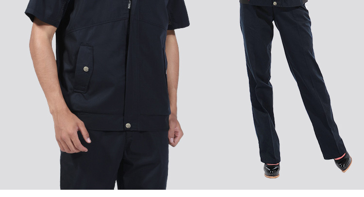 重庆涤棉细斜纹深蓝枣红插色短袖反光条工作服
