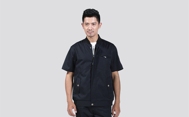 重庆涤棉斜纹铁灰浅灰插色短袖工作服