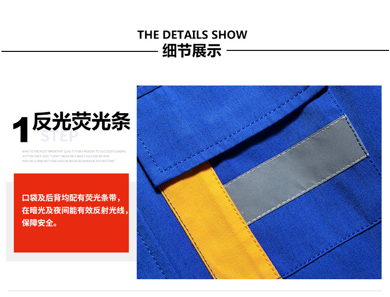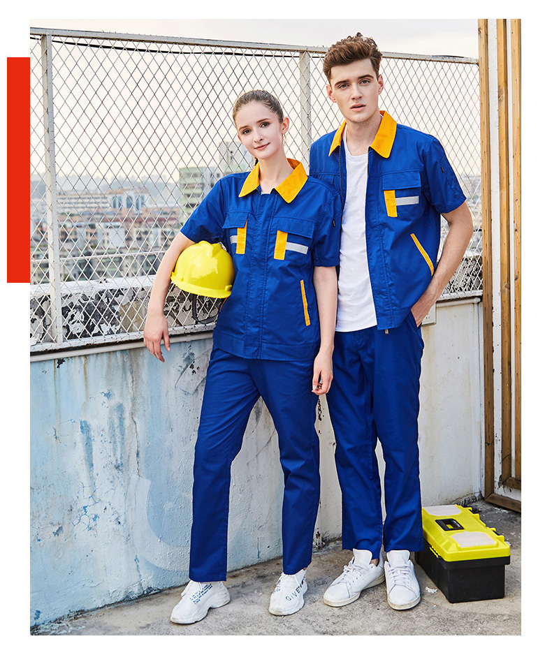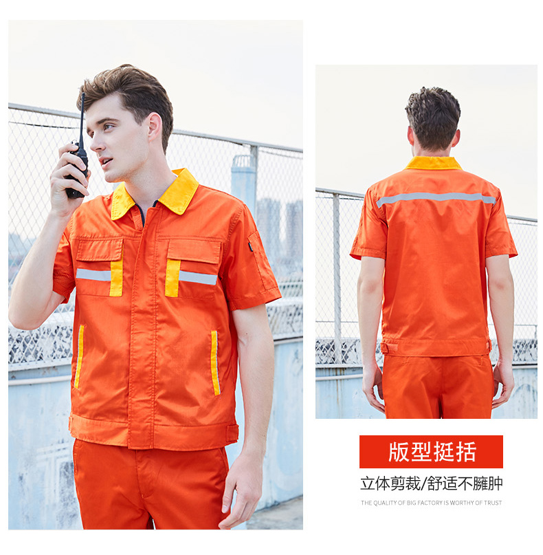 重庆涤棉细斜纹黄色短袖反光条工作服