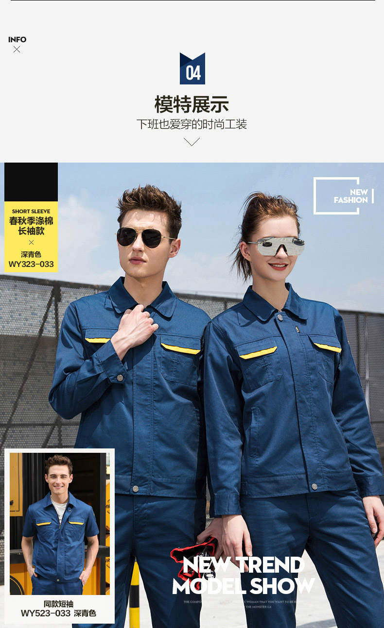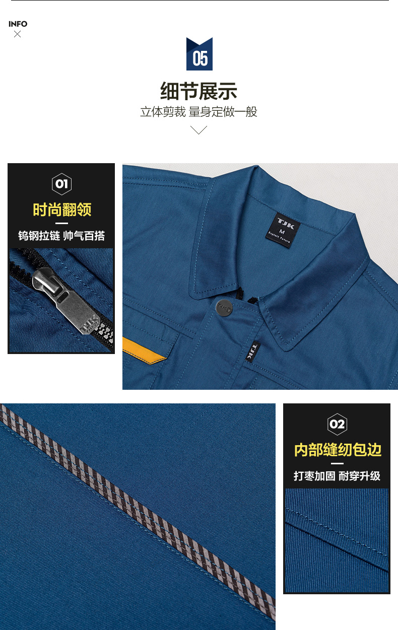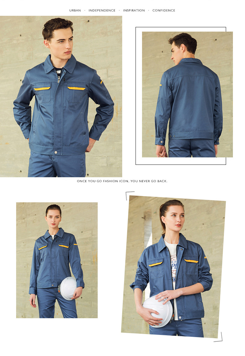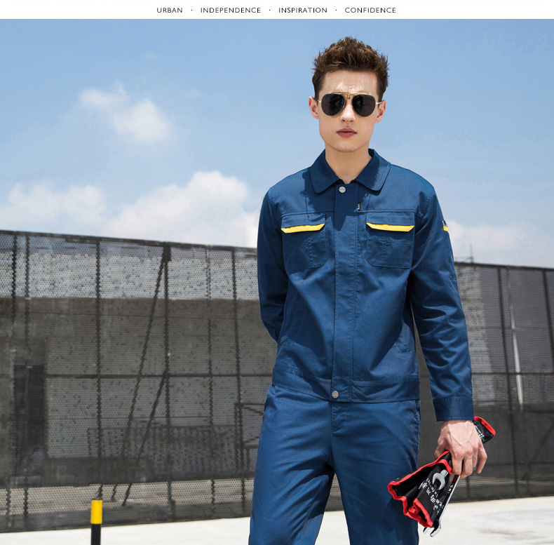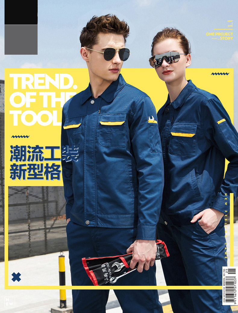 重庆涤棉厚纱卡深蓝插色长袖工作服