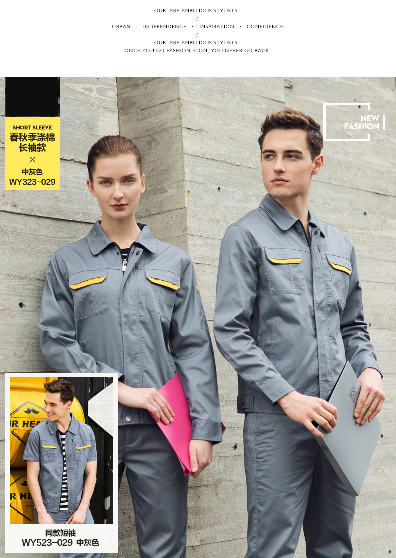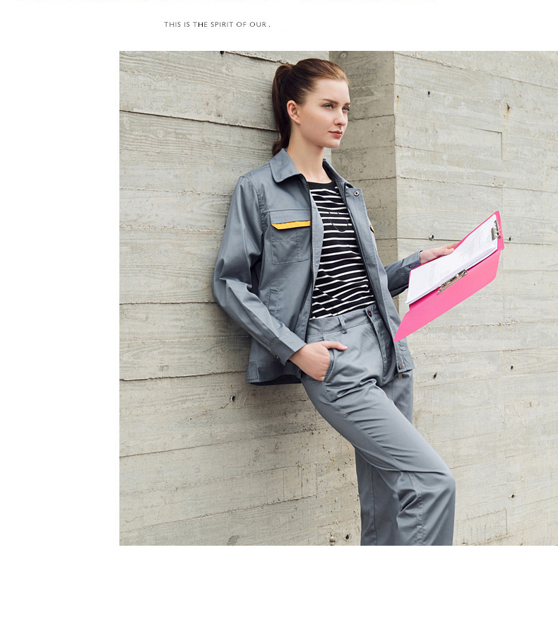 重庆涤棉厚纱卡驼色插色长袖工作服