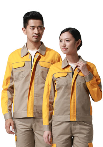 > 重庆涤棉厚纱卡驼色黄色插色长袖反光条工作服