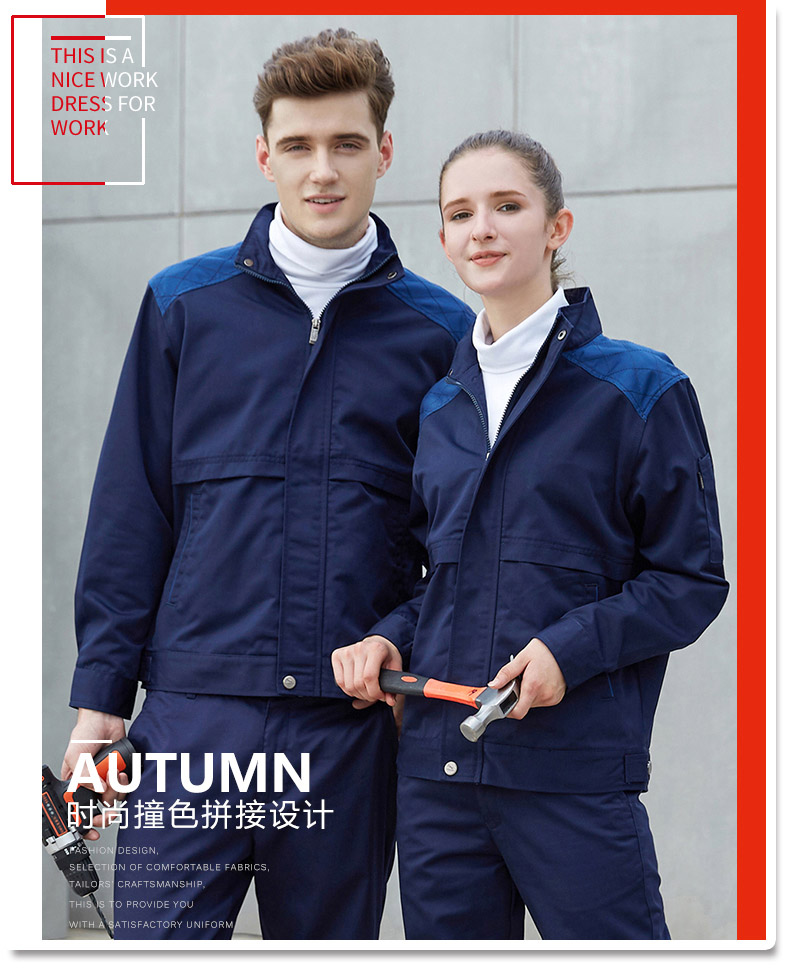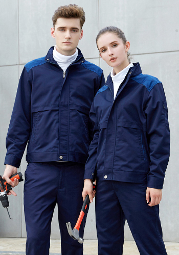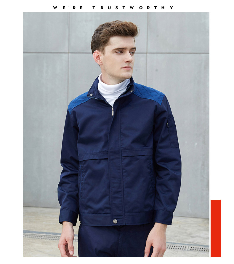 重庆涤棉厚纱卡深蓝插色长袖工作服