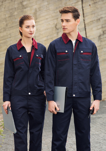 重庆涤棉厚纱卡深蓝插色长袖工作服