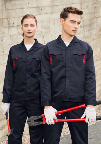 重庆涤棉厚纱卡深蓝插色长袖工作服