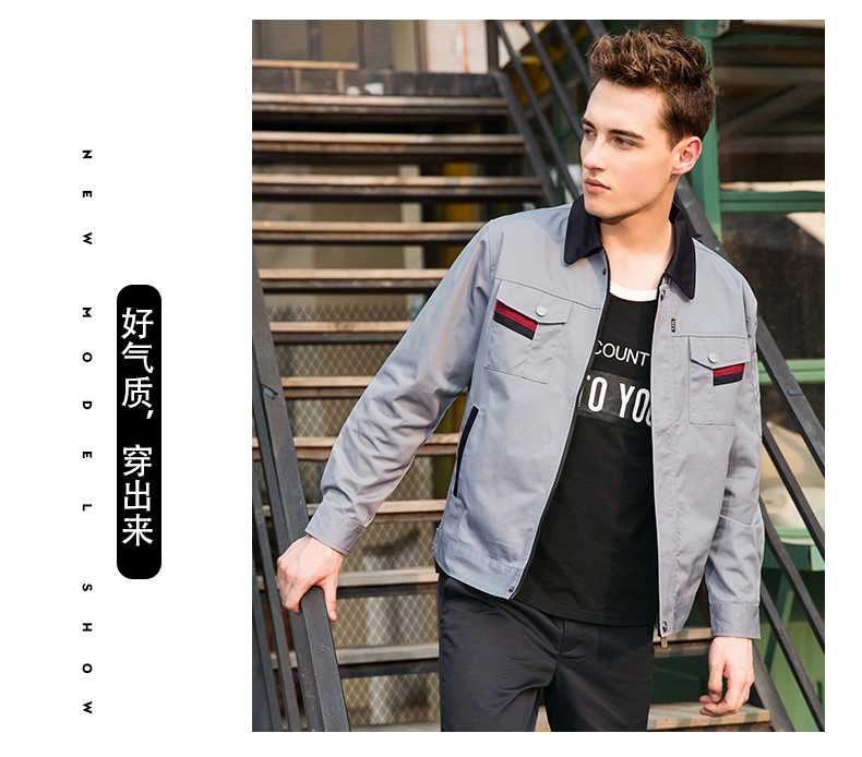 > 重庆浅灰色长袖涤棉纱卡工作服