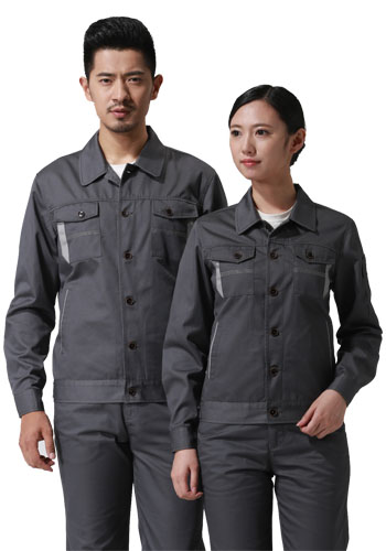 > 重庆涤棉厚纱卡铁灰色长袖工作服