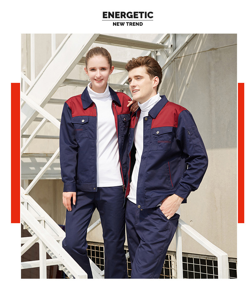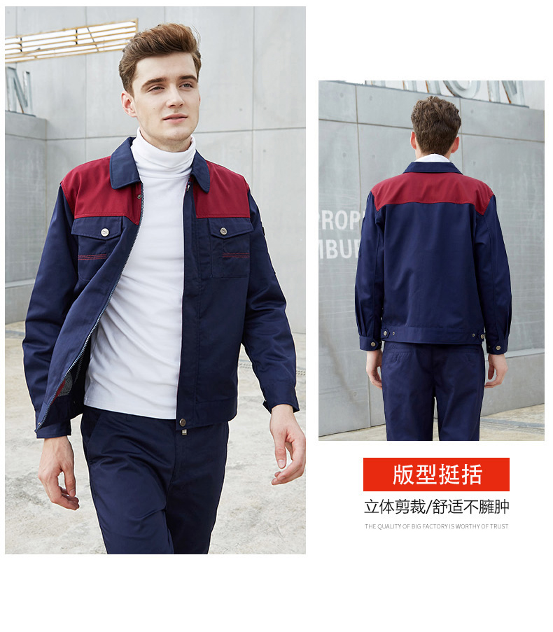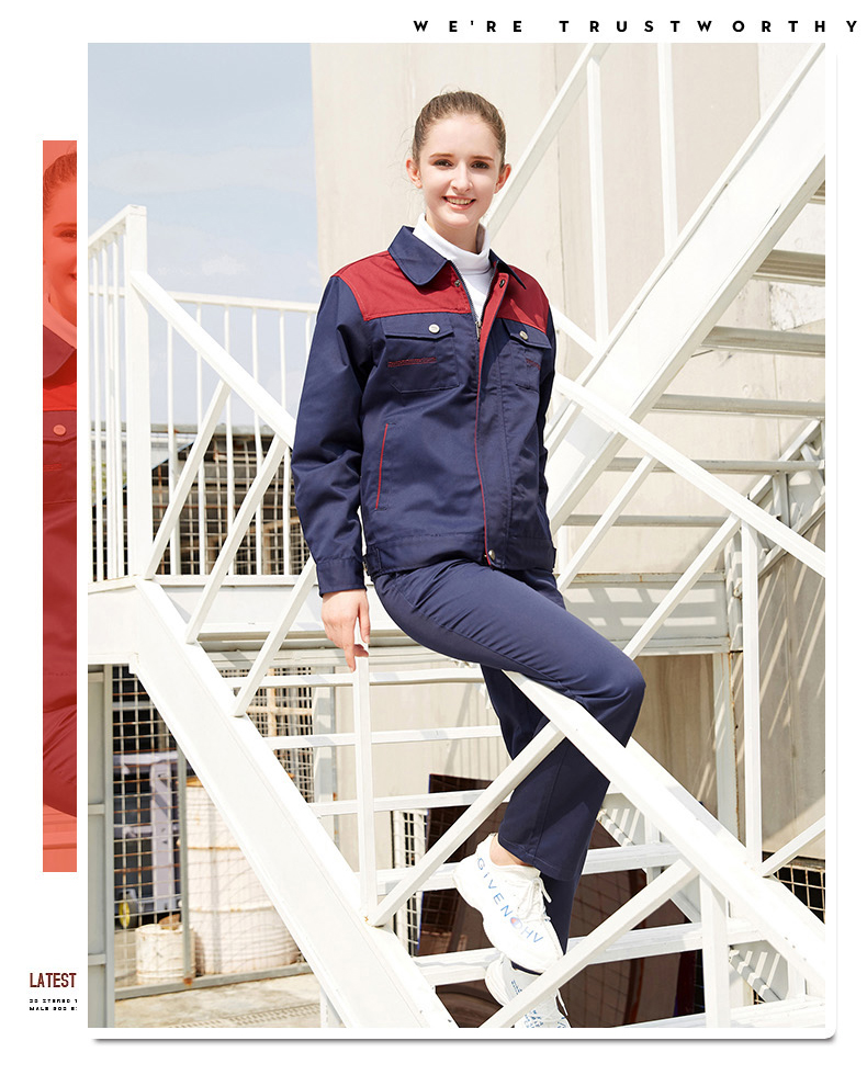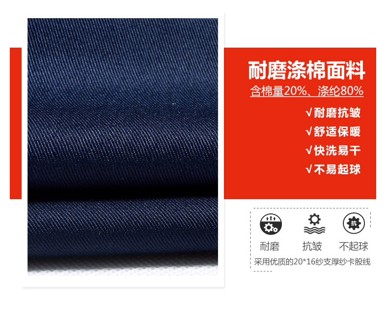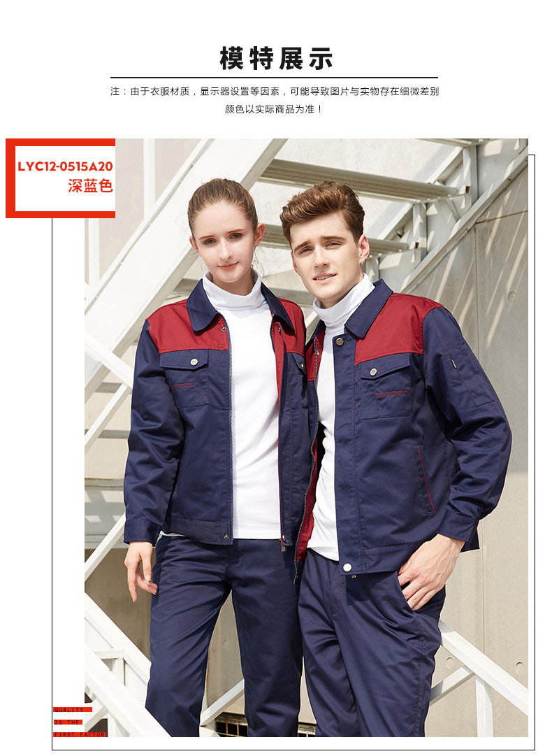重庆涤棉厚纱卡深蓝插色长袖工作服