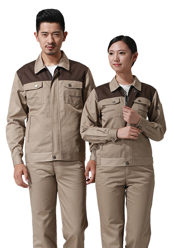 采购:重庆涤棉厚纱卡驼色插色长袖工作服