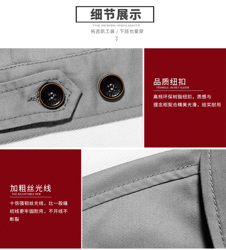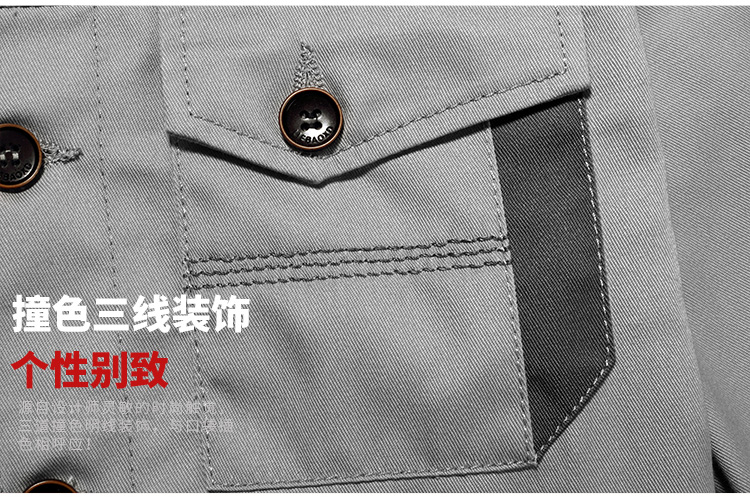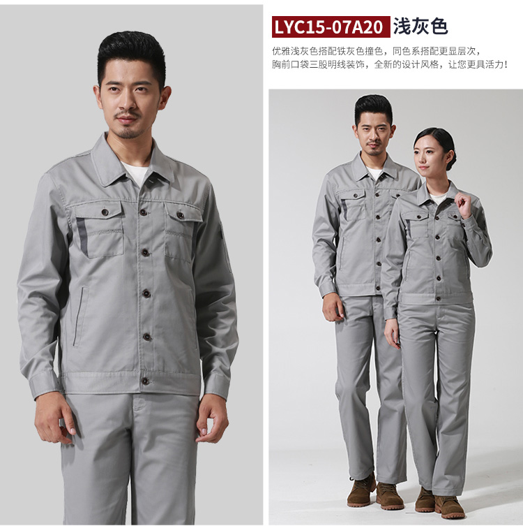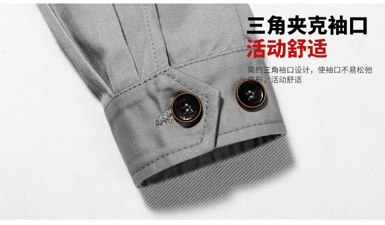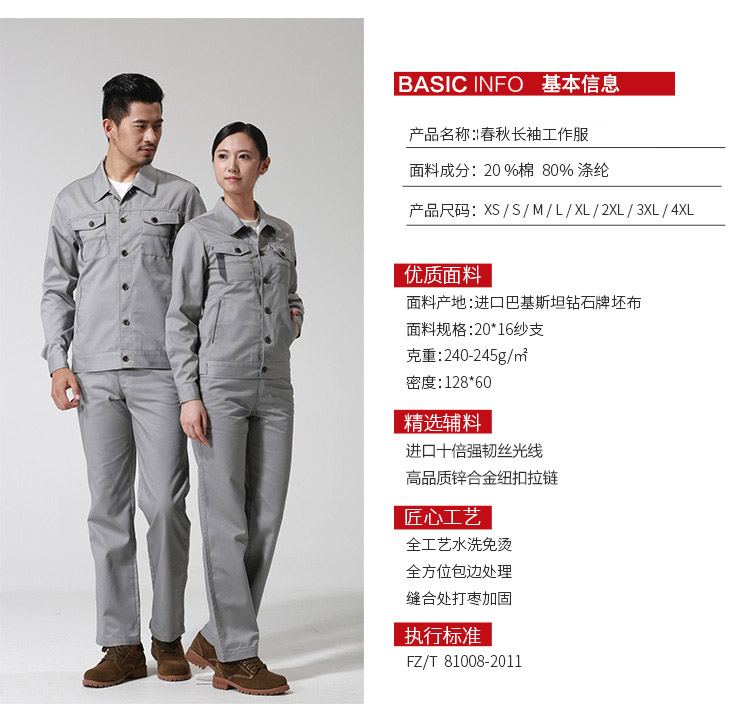 采购:重庆涤棉厚纱卡浅灰色长袖工作服