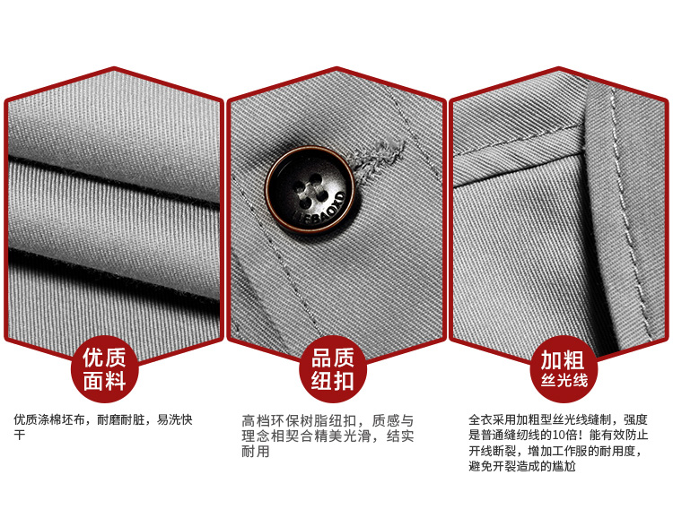 重庆涤棉厚纱卡浅灰色长袖工作服