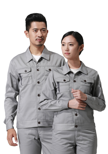 > 重庆涤棉厚纱卡浅灰色长袖工作服